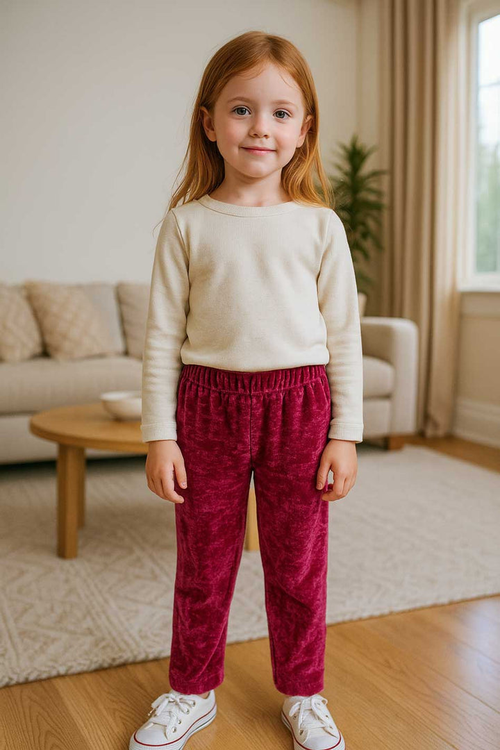 Bring effortless style and cozy comfort to your girl's wardrobe with this Velvet Trousers. Made from luxuriously soft velvet these trousers are designed to keep her comfortable all day long.
